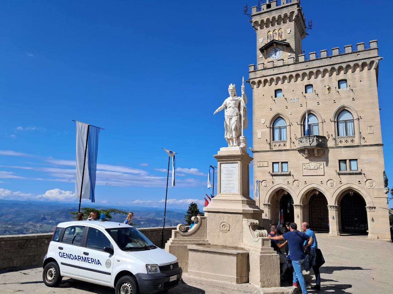 Не сказать, чтобы в Сан-Марино было что-то, за чем туда нужно ехать (в этом, возможно, и кроется секрет их суверенитета). Крепостей-на-горе и городов-на-горе в Италии (и, кстати, Франции) предостаточно, и из-за особенностей местной дорожной сети я посетил их больше, чем хотел бы. Других достопримечательностей в республике нет — кроме той, за которой туда ехал и я, и думаю, остальные туристы с фоточки выше: собственно, он. Суверенитет.