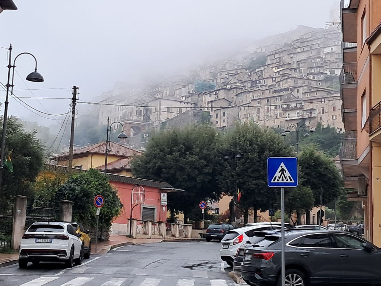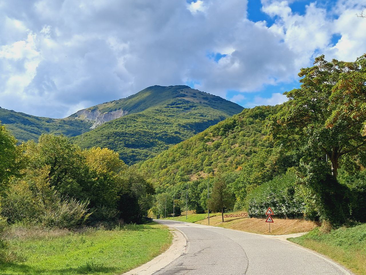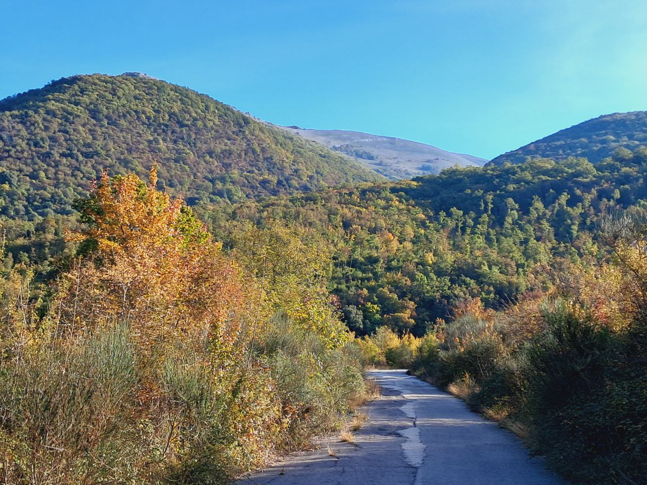 Чем дальше на юг, тем более Италия гористая, и хотя я старался избегать лишних подъёмов, мотыляло от 50-100 до 400-700 и обратно почти каждый день. Если быстро спускаться, то каждые 100-150 вертикальных метров от перепада давления немного закладывает уши. Удивительно, но погода и климат вверху и внизу довольно разная — хотя казалось бы, несколько сот метров разницы. Наверху проглядывала осень, от которой я так упорно убегал: