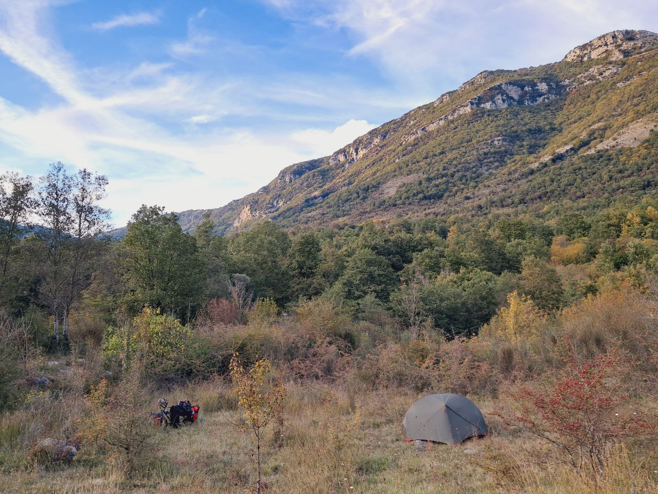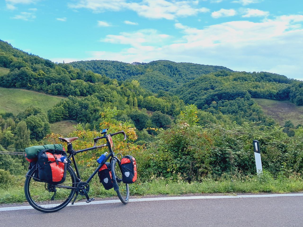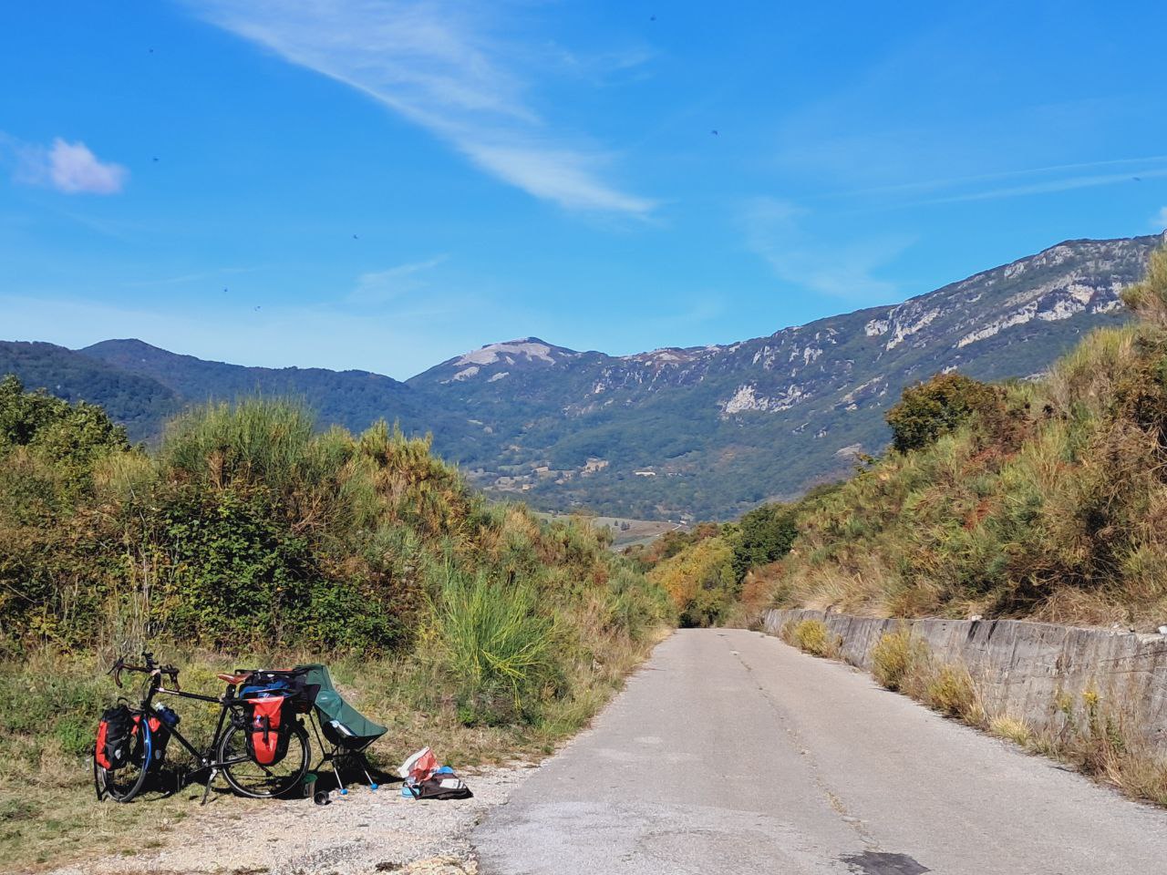 Так понемногу и катился вперёд. Или не катился, а толкал велосипед на очередной холм: любишь кататься — люби и велосипед катать! Ночью кутался в пуховый спальник, днём раздевался до футболки — есть и у октября свои плюсы! Под июльским солнцем в Италии без рубашки с длинным рукавом нельзя (мне), а в октябре вот можно.