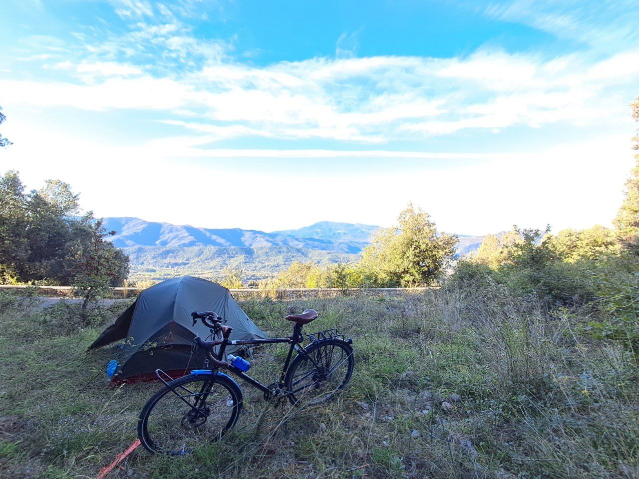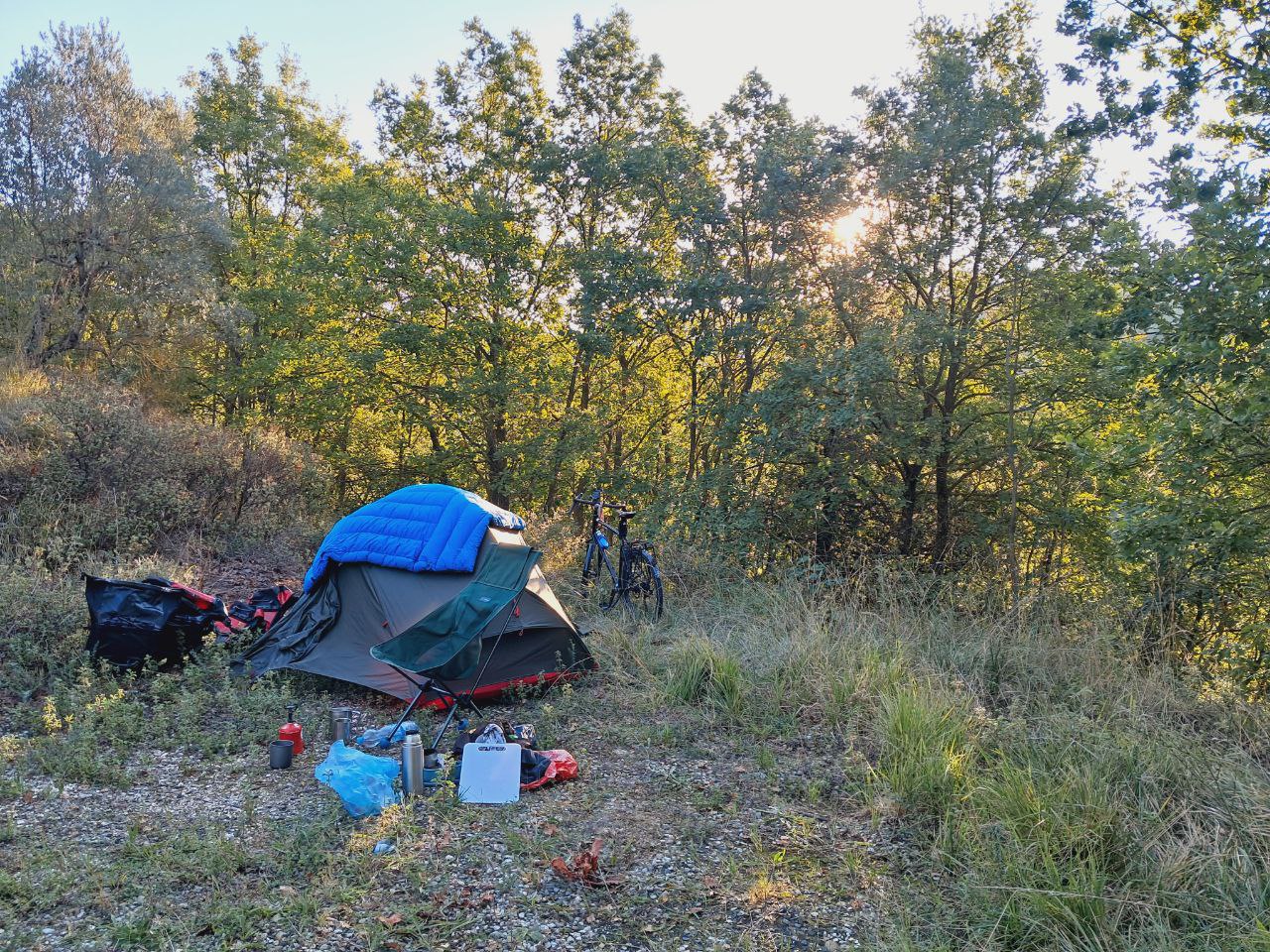Вдали от побережья снова стал ночевать в палатке — там, в малонаселённой центральной части страны, это можно (по закону нельзя, но это Италия, камон). Поэтому, но ещё и потому, что набрался наконец наглости это делать :-) Разбить лагерь и улечься спать там, где ты точно знаешь, что этого делать нельзя — ух, это неожиданно трудно. Но ничего: ставил и на «ничейной» на вид земле: