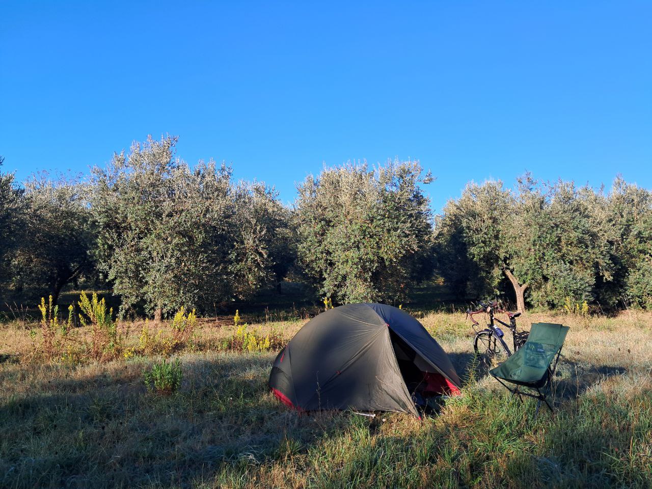 Забегая вперёд, на какой-то из ночёвок с палаткой в оливковой роще (хм, чьей-то оливковой роще, но хозяева меня не спалили) я сорвал с дерева оливку — обычную, мелкую — и попробовал кусочек. Оливка была спелая, мягкая… и ппц горькая! По-подленькому так горькая: не вкусом, а послевкусием. Буэ. Выходит, в интернете не врали.