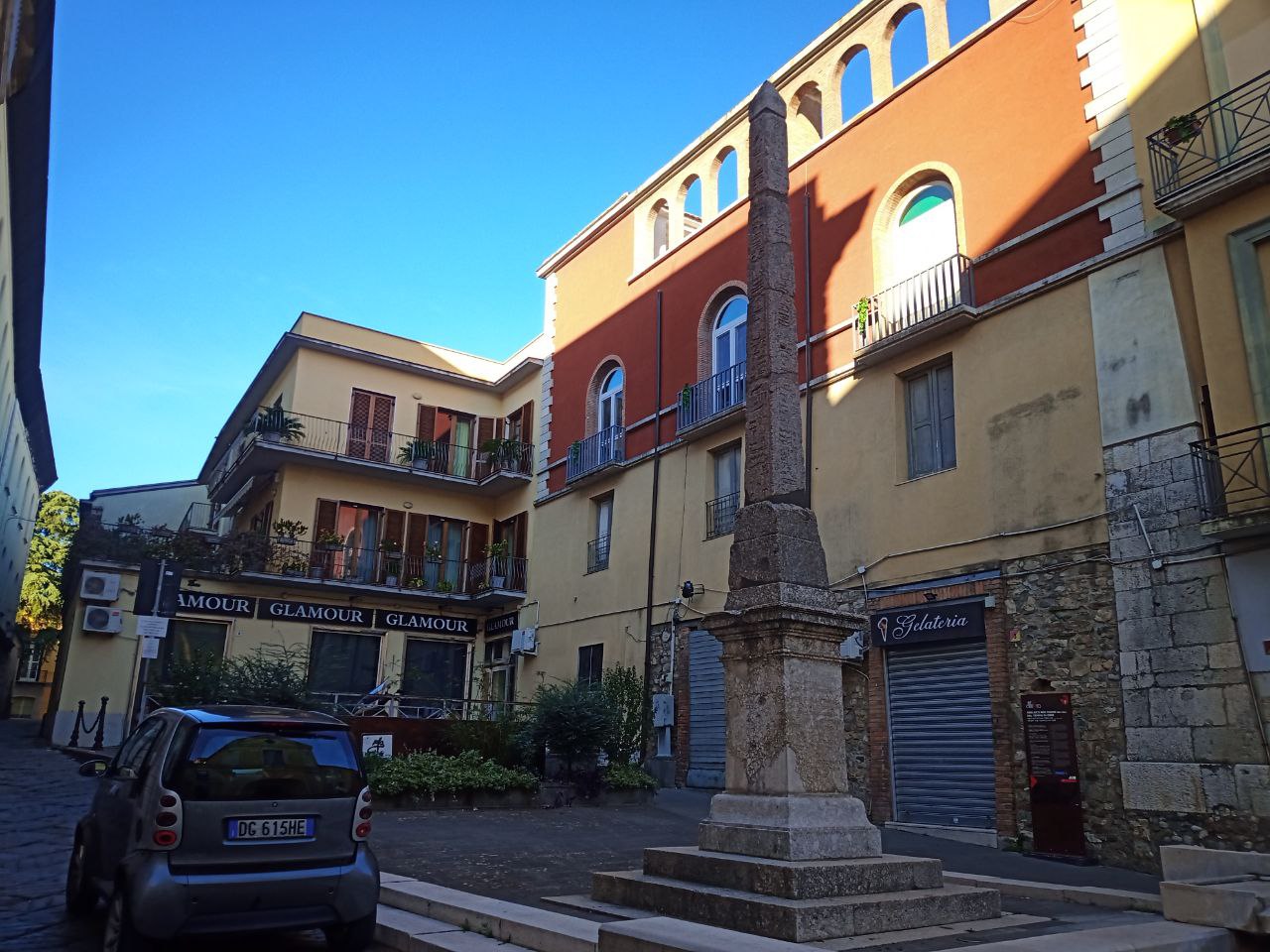 Но из римского трафика фоточки делать было недосуг, так что изображения посмотрите в википедии. Вот вам фоточка другого обелиска, совсем маленького, но тоже древнеегипетского, из города Беневенте:
