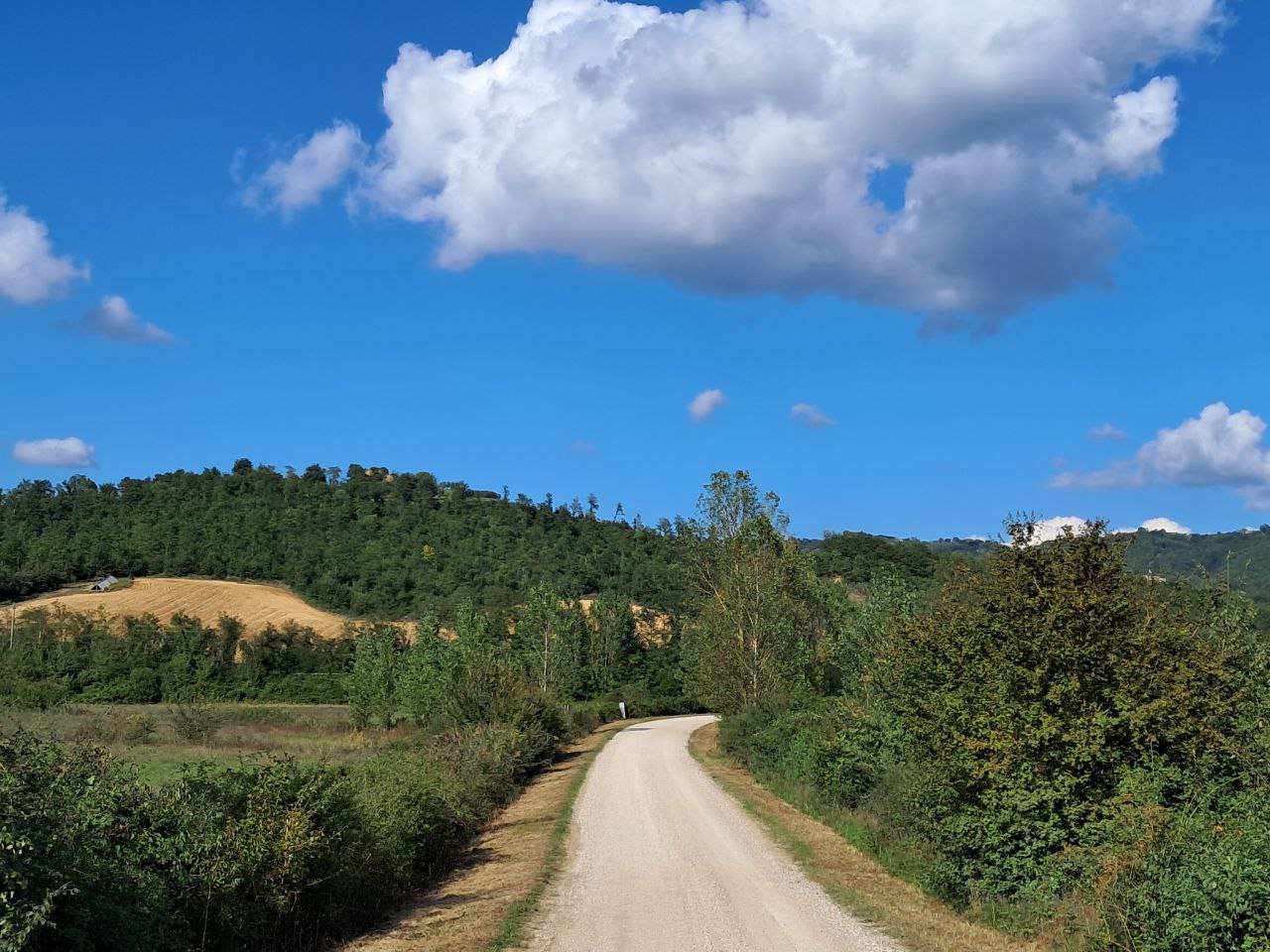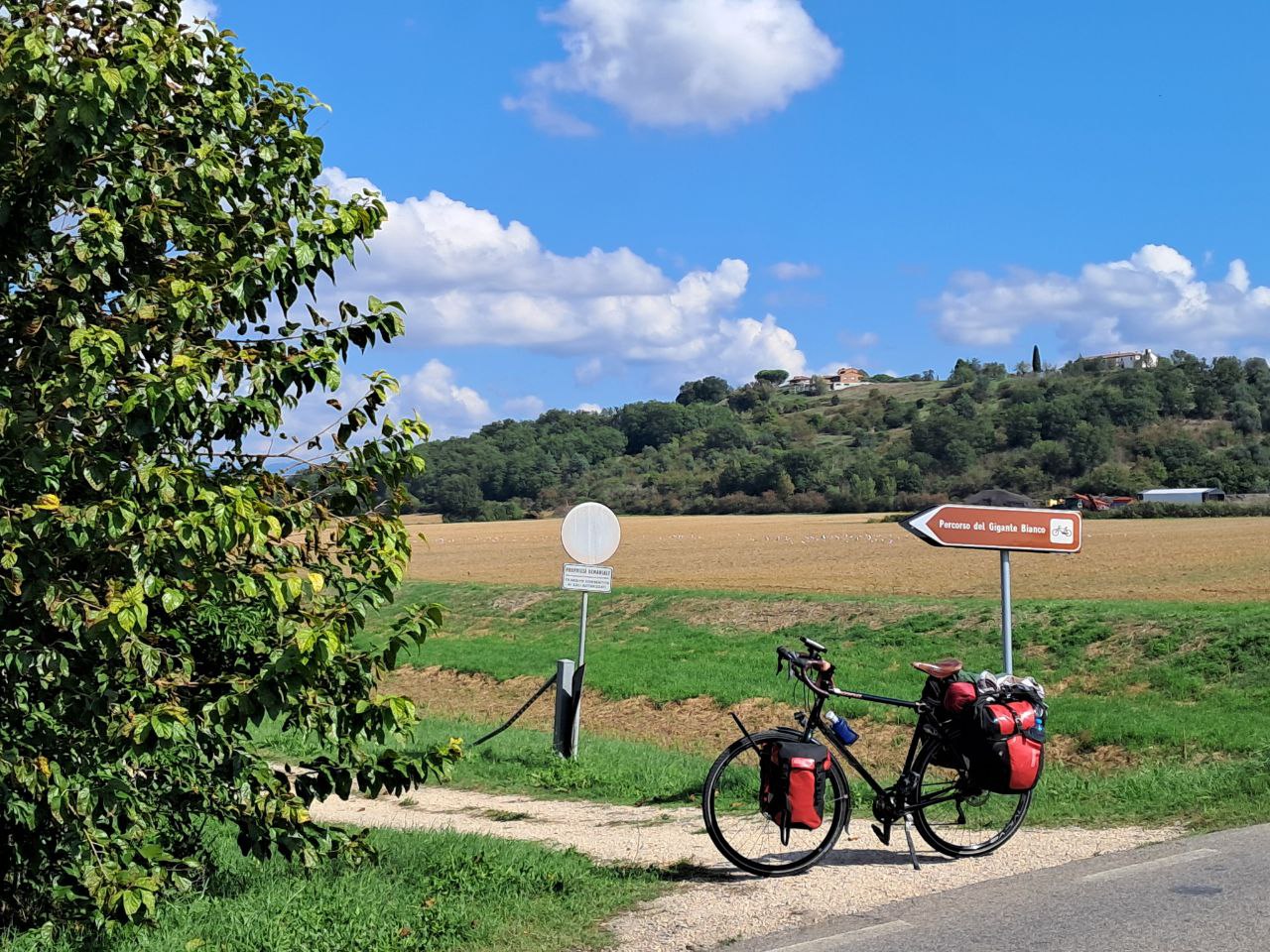 Мне понравилось в центральной Италии. В прошлом году понравилось, в этом понравилось — так с чего искать чего-то ещё? «Le camping sauvage» доступен, опять же — так и дешевле, и интереснее. Так что решил (пока) двигаться по EuroVelo 5 — он же Via Francigena, старый паломнический маршрут через Европу в Рим и дальше в Иерусалим. Из Рима он выходит по Аппиевой дороге и идёт по центру полуострова, как раз как мне надо.